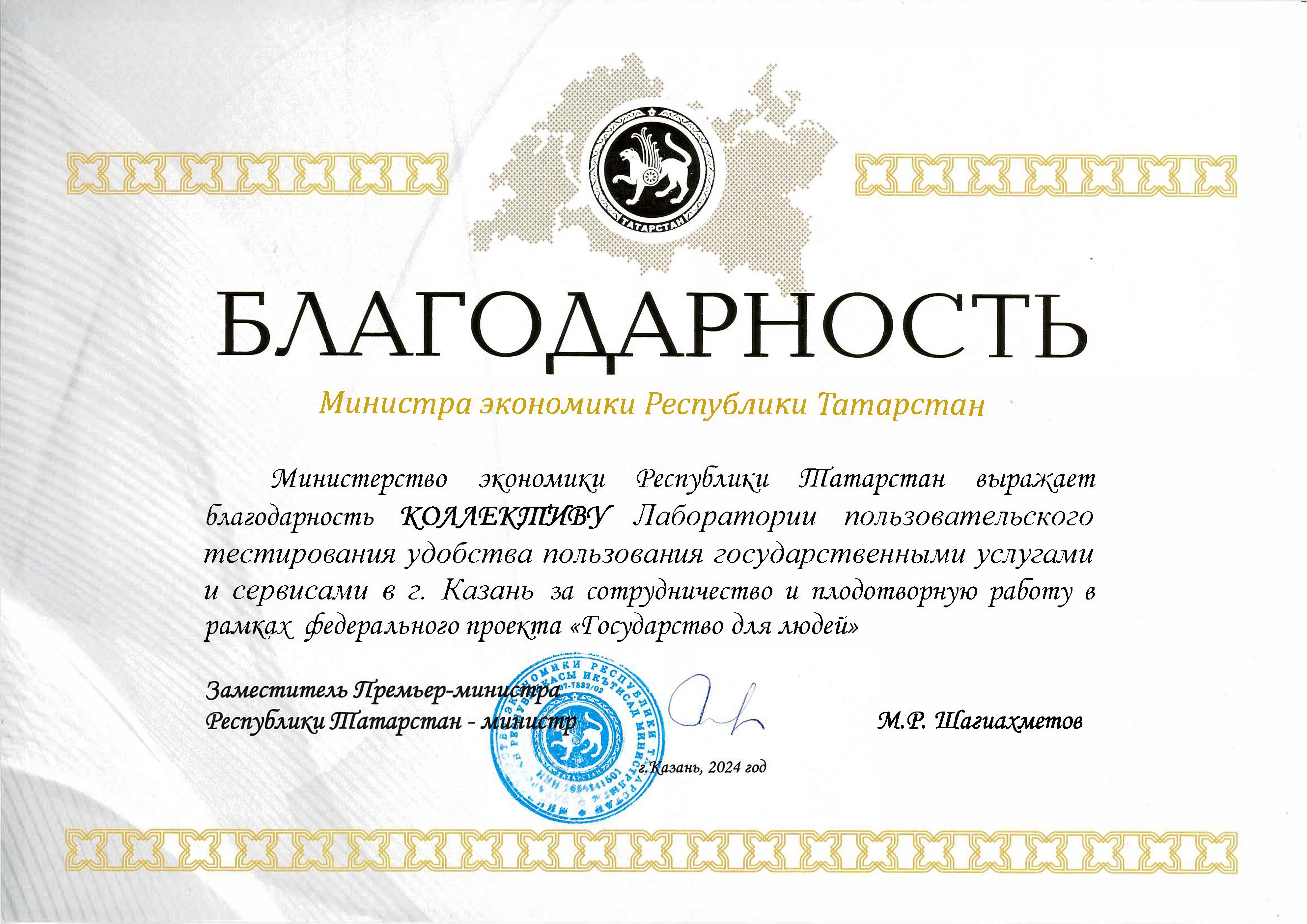 наград Республики Татарстан и Российской Федерации. Благодарностью Министра