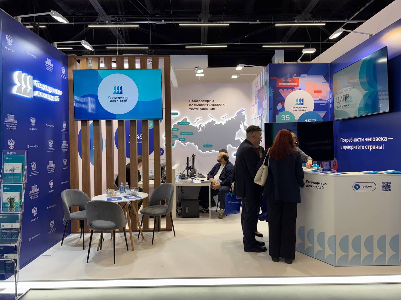 Стенд проекта «Государство для людей» – это площадка для живого диалога и демонстрации результатов работы проекта, а также возможность взаимодействия с представителями федеральных и региональных органов власти, руководителями центров оптимизации и представителями бизнес-сообщества.